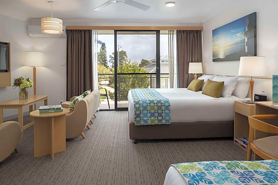 Relax in a Water View Suite featuring a Rydges Dream King Bed and two Rydges Dream King Single Beds, flat-screen TV, media HUB, mini-bar, ceiling fan and free WIFI. This room type has a balcony or terrace with water views over the Hastings River, Marina or pool.